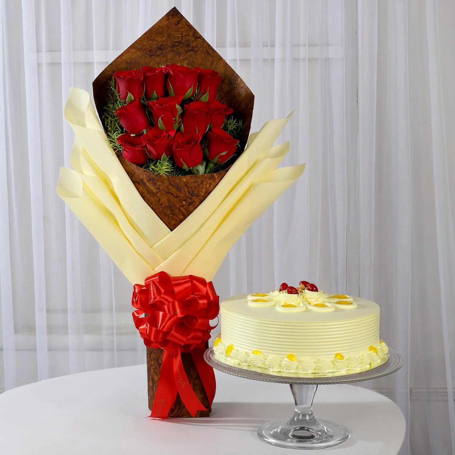 Due to government policies, non woven fabric which is used to wrap this bouquet will be substituted by paper wrapping in Mumbai, Pune & Bangalore